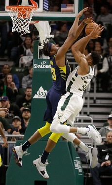 Mike Budenholzer教练,Pacers球迷们一定要记住这个名字。2013-14赛季开始,还在亚特兰大的Budenholzer就用一群青菜豆腐级别的球员搭建了一套一字三分阵,季后赛首轮把Pacers惊出一身冷汗,险些黑八,光头大胡子Pero Antic和emoji纹身男Mike Scott两个大个子在三分线外令我们风声鹤唳。好在当年亚特兰大尖刀欠奉,David West在第六场最后一分钟力挽狂澜,而这个赛季,Budenholzer教练到了Bucks,他手中有了Giannis Antetokounmpo,或许这两人都是Pacers未来的克星。 Giannis Antetokounmpo继上一场之后再次交出MVP级别表现,26分15篮板6个助攻。虽然他三分7射0中,但是Bucks全场出手了47个三分球,打破了队史记录(原纪录只有36次出手),并命中了其中的17个(17和47这两个数字总是特别有缘)。Victor Oladipo感慨,过去六年他来密尔沃基都从未试过对面会抽射那么多三分。 就连6年职业生涯只命中过一个三分球的替补中锋John Henson,今天一下子命中了两个,还都是接球压哨三分,两次都在Pacers企图追分的时候将势头打回去。 “任何时候,只要无法迫使对方停球,球就能突到内线,你只好收缩防守,”McMillan谈到被拆得七零八落的防守的时候这么说,“防守收缩了,那肯定就有分球和三分机会。只要Antetokounmpo能突到内线,他分球给外线队友的水平是联盟顶级的。我们没有守好他的突破。” Victor Oladipo曾经试过螳臂当车,在篮底只手拦下字母哥搏了争球,但这几乎是今晚唯一的成功画面:“我们一个人无法守住他,要上更多人围追堵截,我们得更早对他施压。只要他找到节奏找到队友,队友们就能投中,那就很难防了”。 Bucks命中了17个三分球,而Pacers只出手了18个三分球,McMillan季前强调了一万遍要增加三分出手,还在夏天引进了一批射手配角,然而这效果至今还没体现出来,今天的18次三分出手甚至比上赛季的平均出手数还要少6.5次,究其原因,可能要归咎于双方主将进攻选择的不同。 Antetokounmpo坚决地执行了魔球理论,23次出手只有一次是非篮下非三分线的中距离,而Oladipo的23次出手里面,中距离高达16次。对面明显地选择了防篮底和三分,放中距离的策略。这并非什么高深的策略,全联盟大部分的球队可能都会用,McMillan一定也在训练里无数次强调了增加三分和篮下出手的重要性,但真在场上面对这个策略,Victor的本能可能还是战胜了头脑。挡拆位置造成不方便在三分线外出手,又没有坚决地冲击篮下,于是对方阵型不用收缩补防协防,Bojan Bogdanoivc、Doug McDermott等人的无球跑位三分火力就毫无用武之地。 开局短暂领先的Pacers很快就被反超,Nate McMillan在第一节末再次摆出来双塔,然而Sabonis完全无法跟上Ersan Ilyasova,连续被面框吃了两个球之后无奈换下。倒是新来的Tyreke Evans状态越来越出彩,第二节前半段他和Sabonis的二人转挡拆主导了Pacers的绝大部分进攻,作为挡拆发起者,他所需要的传球操作空间令人惊讶地小,在人堆里都能送击地,加上Sabonis非常聪明的切入时机,Pacers得以勉强维持住分差,Evans甚至还在突破中玩儿了一招假传上篮,骗过了对手,也骗过了屏幕前的球迷。Oladipo和McDermontt趁字母哥下去连续中了两个三分追到只剩4分距离,但字母哥只休息了三个回合马上回来,分差变成9分过半场。 第三节对手休整之后突然提升强度,Pacers失误增加,对面一个一个地抓反击,分差迅速被拉开,McMillan绝望中试了Bogdanovic,McDermott,Collison,Oladipo和Turner的全射手阵容,结果落得篮下Turner防守篮板1抢3的境地,然后又在第三节后半段再度祭出双塔,然而输得更惨,Turner,Sabonis,Evans,Oladipo和Collison这套阵容是今天所有组合中间输分最多的。第四节剩下4分14秒,Pacers 89:113落后,McMillan提早举白旗投降。 “我们没能守住他们任何转换进攻,”今天负责主防Antetokounmpo的Thad Young承认,“我们的进攻不像想象的流畅,很多回合Giannis抓下篮板,推反击,点燃了他们的进攻。” McMillan对全队的篮板和传球都不满意,Pacers让Bucks全场抢了11个前场篮板,而自己只有14个助攻17个失误:“进攻端我们要更犀利,只有14个助攻,球都停了,我们得出第一个好机会就要果断投篮,这样才能让对面的防守松动。” 没时间太沮丧,Pacers要连夜赶回印城,打本赛季第一个背靠背,对阵布鲁克林,希望能从失利中吸取教训,迅速恢复过来。下场比赛,TJ Leaf将继续缺阵。