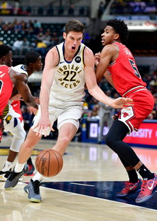 纵使对面缺兵少将,但Pacers全队上下却未掉以轻心。交出14分3板4助的Malcolm Brogdon说:“芝加哥是那种很会在防守上给对手施压的球队,而之前和Kings的比赛里并没有那样的压迫感,今天对阵Bulls对我们来说是一场很好的经历。” 双方在第一节也的确打得有来有回。一开局T.J. Warren便突分助攻底角Jeremy Lamb三分得手,但在随后的7分多钟里Pacers只有10仅2中;然而Bulls也不好过,菜鸟Gafford早早两犯下场,还送给Pacers三粒罚篮,Pacers也因此才得以保持微弱的优势。随后两边也逐渐找到节奏,首节打完Pacer 24:19领先5分。 第二节上来,Pacers的进攻几乎就是T.J.McConnell和Doug McDermott的二人转。McConnell先是两度助攻McDermott三分命中,随后自己又转身跳投打进。Edmond Sumner和TJ Leaf也出来趁火打劫,Pacers一举轰出12:2的小高潮领先了18分。 但后半节重新换上先发之后,Pacers的处理球却显得有些随意,5次失误也给了Bulls不少反击的机会。万幸Pacers准星尚可,Warren在还剩12秒时完成三分打,这才让Pacers在半场结束领先对手13分。 此后的比赛虽然几乎失去了悬念,但Nate McMillan似乎还在对轮换阵容放不下心。末节初段面对对手Christianio Felicio,Domantas Sabonis连续两次拉出来三分,只可惜Sabonis今天手风不顺,无法用背身和远投惩罚对手。第四节领先15分在最后8分钟依然换上先发上来磨合,Myles Turner站中间演练一大四小,T.J. Warren、Justin Holiday、Jeremy Lamb和Malcolm Brogdon,一路玩到最后三分钟才收队。 其实Nate McMillan对阵容磨合程度的谨慎不无道理,如今季前赛也只剩一场。今天全场比赛Pacers一共出现27次失误,前两场印度赛的失误数也高居不下,分别有24次和20次。 “我们今晚面对的防守和紧逼在接下来的赛季里比比皆是,”Nate McMillan显然对球队现在的表现不是很满意,“我们是一支人人都想打败的球队,我们的对手肯定会充满侵略性。现在我们处理球的水准显然不及格,我们不能运着运着就绕进死胡同里去了。” 其实Pacers全队上下的化合反应也绝非那么不堪,全场比赛Pacers全队刷出了26次助攻,将近对面Bulls的两倍,同时防守端将Bulls的命中率限制在四成以下。 Pacers的传导在第一节就体现的淋漓尽致:Brogdon先是击地传给挡拆顺下的Sabonis,随后Sabonis外传蹲在底角的Turner,三分线外两次传导,最终回给完全空位的Brogdon三分命中。这些优秀的转移球最终都体现在了球员的数据单上,得分平均,6人上双,而且几乎所有上场的球员都填上了得分篮板助攻这三条数据栏。比起单打独斗最后失误,Pacers的球员们似乎更加愿意分享球,并且似乎有些“过于”热爱传球了。 “今年的球队真的很有天赋,我们能够得分,我们也愿意去防守,我们还有Victor,他能给我们创造很多进攻机会。”Brogdon赛后这么评价自己的球队,“但我们的确还有很多需要努力的地方。” T.J. Warren今晚不知不觉又交出了全队最高的17分,Myles Turner和MalcolmBrogdon都对他的得分能力无容置疑,Brogdon甚至将他归档为Lou Williams这样的刷分手。Nate McMillan也谈及自己对Warren的用法:“我们现在的重点是让T.J.学着去打三号位。同时我们大家都在摸索他的节奏,给他适当的调整,让他持球发挥。我们现在还在彼此熟悉,进攻上给他创造机会,防守上则挑战他。” 当年球队把防守联盟垫底的Bojan Bogdanovic硬是改造成了一个合格之上的防守翼位,如今球队也打算通过体系改变T.J. Warren的防守习惯。T.J. Warren自己也感觉明显:“我们的五个先发,彼此互相呼应,这给了我莫大信心,因为我知道自己就算被过了,后面都有队友协防。同样地,我也要和他们肝胆相照。” T.J. Leaf昨天提早获得了下个赛季的全额保障合同(最后一年新秀合同),他今日终于可以上阵,15分钟7分3板。队友们都说他这个暑假进步神速,他还需要更多实战时间找感觉。Aaron Holiday也提早拿下了下个赛季的全额保障合同(第三年新秀合同),但他今日因病缺阵。反而T.J. McConnell带领第二组别加快节奏但有条不紊,自己贡献4分7板4助。有消息称新赛季Nate McMillan已经决定让McConnell出任第三控卫。 菜鸟Goga Bitadze因为脚踝伤势已经有10天未参加训练,他有可能缺席整个季前赛。Pacers将在周六放假一天。北京时间下周三对阵Timberwolves,那将是今年的最后一场季前赛。