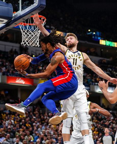 但其实T.J. Warren这一球并非主要败因,反而是对方两个替补Luke Kennard和Derrick Rose的“抽风”让Pacers毫无办法。前者上半场5投全中砍下15分,后者第四节单节射入4记,全场射入6记三分刷出生涯新高30分。 Nate McMillan也表示无奈:“整场比赛下来我们一直都没有防住他俩,他们打的比我们更加坚决,而我们在一直没有办法去回应他们的表现。我们的进攻也一直没有很流畅,他们在防守端给了我们很大的压力。” Pacers的进攻不畅其实在第一节就有所体现,开局的8个回合中,Pacers有三个回合出现了失误,其余的5个回合中5投全失,半节还落后7分。 “我想总有那么几场是找不到节奏的,今晚就是这样。”Myles Turner说:“其实球赛一开始就有这种感觉,我们甚至找不回热身赛时的节奏。现在节奏快多了。” 让Pacers开始回魂的,反而是第六人身份上场的Edmond Sumner。他被Nate McMillan勒令上来就必须做“全场防守第一人”,他先是抢断Tony Snell后一条龙扣篮得手,又在下一个回合截住Rose的传球,并最终交给Sabonis上篮命中。第一节下来他单节贡献3次抢断,3投全中拿下6分,主队追到24:27完第一节。 次节开始,Nate McMillan开始把目光放在替补的轮换上,半场下来Pacers足足有11人获得了上场时间。纵观全场上下半场轮换阵容只差一人,而差的一人正是Aaron Holiday,他在出场的6分多钟内6投全失还有两个犯规,好在第二节Turner在外线发威,单节命中两记三分,其中还包括一记技惊四座的后撤步,帮助球队成功反超比分。 “我们在尝试不同的排列组合。”McMillan在赛后接受采访时说,“上半场11人轮转和下半场的10人轮转,都是为了找出能让球队在攻防两端收益最大化的组合。” 三节开始Pacers众将终于发威,双塔在内线频频欺负Thon Maker,Pacers打出一波13:0的小高潮将分差拉到9分。Pacers有三次机会拉开双位数字没把握住,Myles Turner和Domantas Sabonis后半节轮换上场,Luke Kennard第三节压哨三分命中,重新追到一球距离。 Nate McMillan到第四节依然在尝试轮转,被对手反超后,Nate McMillan在比赛剩下10分钟就开始用双塔,Domantas Sabonis在剩下6分钟时篮底“三分打”重新反超,但这时Nate McMillan却用Edmond Sumner将他换下尝试用矮小的阵容。 之后虽然有Jeremy Lamb完成三分打,101:97,但其实这是Pacers今夜的最后一次领先。Andre Drummond抢下前场篮板补篮命中,然后Pacers居然连续多次因为Drummond收缩篮底漏空Luke Kennard,后者惩罚性的射入两个三分,客队瞬间反超4分将Pacers打停。 “就是沟通不足,”Malcolm Brogdon说,“Kennard有太多空位出手机会了,他们一直在执行,而我们防守一直不到位。” 后面Domantas Sabonis重新上场,他踉踉跄跄接到Brogdon传球强投命中才帮Pacers止血。然而下个回合T.J. Warren持球突破……一切都回到了开头的那一幕。后面Luke Kennard和Tony Snell再加两个三分,球迷开始离场了,最近十次主场揭幕战,第二次败北。 Pacers双塔数据华丽,Sabonis有27分13板,Turner也有25分9板3帽4个三分。但他们俩敌不过Andre Drummond的32分23个篮板,下半场居然8罚全中。而Derrick Rose上半场抽风完全场18分9助,更别说Luke Kennard的6个三分球。底特律全场命中率过五成,还抢赢八个篮板。 抛开对手抽风不谈,就单场比赛看Pacers在轮转和磨合上其实还欠些火候。Sabonis此役作为首发出战35分钟,而上个赛季常规赛他没有一场比赛的时间超过这个数字,作为球队的掩护第一选择,Sabonis需要不断的顺下,分球,抑或是背身,这对他的体力消耗很大。今天末节比赛就是个很好的证明:Sabonis连着两个回合的底角三分和转身勾手全部以三不沾收尾。而Nate McMillan在这场比赛除了双塔之外摆出的大都是小个阵容,11人轮换新秀Goga Bitadze没有上场机会,而T.J. Leaf也只获得了三分钟的出场时间,这样内线完全就由Turner和Sabonis两人支撑,最后时刻难免会力不从心。 今日Victor Oladipo第二节作为解说嘉宾分享了他对新阵容的看法,他认为球队新队员太多,时一定需要时间磨合的,他觉得无论时球员还是球迷,都要给自己跟多耐心。今日Malcolm Brogdon交出22分11次助攻,但Jeremy Lamb和T.J. Warren两个新援就明显没有找到节奏。Nate McMillan给球队定出的场均30个三分球出手目标,今晚也只出手23次。 Nate McMillan说:“这只是第一场,我们会回去研究录像。我认为今晚进攻没打出节奏,很多时候都卡壳了。这需要时间的,队员在攻守两端都要彼此了解,这个化合作用需要时间才能奏效。” T.J.